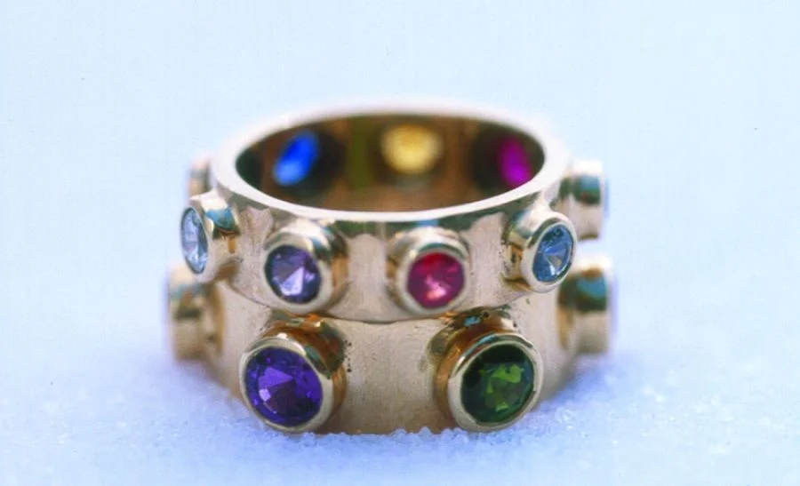Much like earrings, I do really like creating and wearing rings. Big rings! There are so many possibilities of color, shape and design using the many treasures and ideas that I have collected. I wear different rings each day, mostly on my favourite finger, the index finger. Matching my mood, color coordinated with my outfit, event and mood. I even have a very large ring collection of everything from diamonds to plastic. Pieces I have picked up along my journey and that I much enjoy wearing.